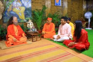 पूज्य स्वामीजी ने बैकस्टेज सिब्लिंग्स राघव व प्राची को रूद्राक्ष का पौधा, अंगवस्त्र देकर उनका अभिनन्दन किया।