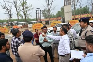 हरिद्वार। चारधाम यात्रा को सुगम, सुरक्षित एवं सुव्यवस्थित ढंग से संचालित करने के लिए जनपद हरिद्वार के प्रवेश द्वार नारसन बॉर्डर पर परिवहन विभाग द्वारा चारधाम यात्रा के लिए बनाए गए ग्रीन कार्ड केंद्र का जिलाधिकारी मयूर दीक्षित एवं वरिष्ठ पुलिस अधीक्षक नवनीत सिंह भुल्लर ने निरीक्षण कर उपलब्ध की जा रही सुविधाओं एवं व्यवस्थाओं का जायजा लिया।