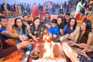 लोहड़ी पर्व पर स्वामी चिदानन्द सरस्वती के पावन सान्निध्य में विश्व के अनेक देशों से आये श्रद्धालुओं ने किया विश्व शान्ति यज्ञ माघ मेले की दिव्यता को आत्मसात करने हेतु परमार्थ त्रिवेणी पुष्प से आमंत्रण