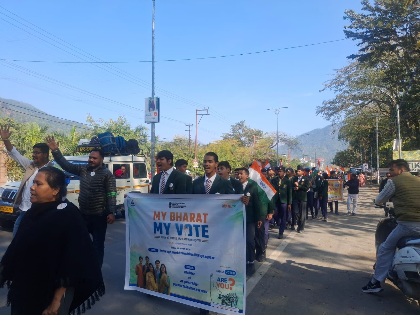 देहरादून। रविवार को मेरा युवा भारत (MY Bharat) उत्तराखंड, युवा कार्यक्रम एवं खेल मंत्रालय भारत सरकार द्वारा राष्ट्रीय मतदाता दिवस के उपलक्ष्य पर प्रदेश में मतदाता जागरूकता कार्यक्रम के आयोजन किेए गए। जिसके अंतर्गत देहरादून, टिहरी गढ़वाल, पौड़ी गढ़वाल में पदयात्राएं और साइकिल रैली निकाली गईं। जिला खेल कार्यालय नरेंद्र नगर टिहरी गढ़वाल के सौजन्य से पूर्णानंद स्टेडियम से भद्रकाली, भद्रकाली से पूर्णानंद वापसी तक साइकिल रैली का आयोजन किया गया। पौड़ी गढ़वाल के कण्डोलिया पार्क में सहायक निर्वाचन अधिकारी एस०ए०एल० शाह ने युवाओं को मतदाता शपथ दिलाई। नैनीताल में पदयात्रा का शुभारंभ सेंट पॉल्स स्कूल, काठगोदाम से हुआ, जो क्वीन्स सीनियर सेकेंडरी स्कूल, हल्द्वानी तक निकाली गई।