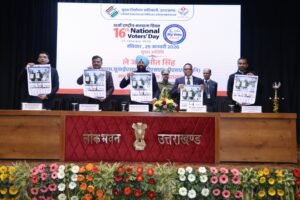 राज्यपाल लेफ्टिनेंट जनरल गुरमीत सिंह (से नि) ने 16वें राष्ट्रीय मतदाता दिवस के अवसर पर दीप प्रज्वलित कर कार्यक्रम का शुभारम्भ किया। इस दौरान राज्यपाल ने कार्यक्रम में उपस्थित नागरिकों को मतदाता शपथ भी दिलाई। राज्यपाल ने निर्वाचन गतिविधियों में उत्कृष्ट कार्य करने वाले जनपद रुद्रप्रयाग, उत्तरकाशी, चम्पावत और बागेश्वर के जिलाधिकारियों को सम्मानित किया। इसके साथ ही ईआरओ रुड़की, खटीमा और चकराता को प्री-एसआईआर के दौरान उत्कृष्ट कार्य हेतु सम्मानित किया गया। कार्यक्रम के दौरान राज्यपाल ने स्टेट आईकॉन पद्मश्री बसंती बिष्ट, ओलपिंयन मनीष रावत एवं नुंग्शी मलिक को स्मृति चिन्ह देकर सम्मानित किया। इस अवसर पर देहरादून जनपद के 18 वर्ष आयु पूर्ण कर चुके नए मतदाताओं को मतदाता पत्र देकर राज्यपाल ने सम्मानित किया।