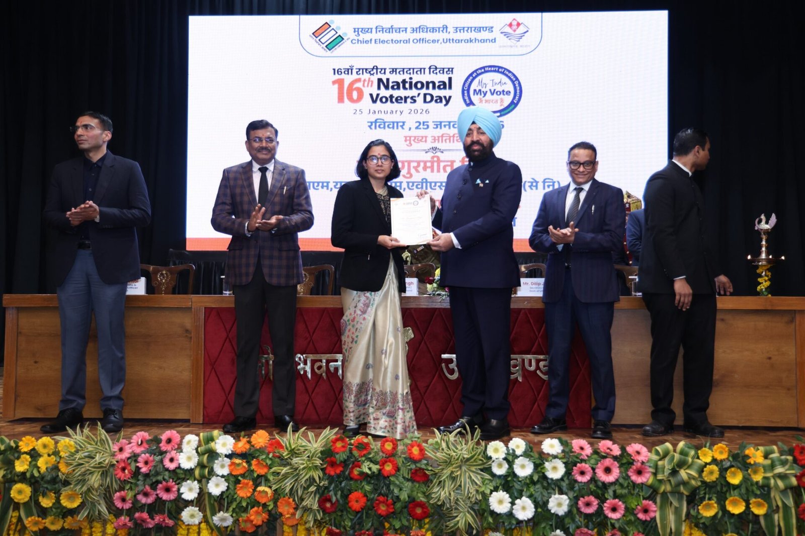 राज्यपाल लेफ्टिनेंट जनरल गुरमीत सिंह (से नि) ने 16वें राष्ट्रीय मतदाता दिवस के अवसर पर दीप प्रज्वलित कर कार्यक्रम का शुभारम्भ किया। इस दौरान राज्यपाल ने कार्यक्रम में उपस्थित नागरिकों को मतदाता शपथ भी दिलाई। राज्यपाल ने निर्वाचन गतिविधियों में उत्कृष्ट कार्य करने वाले जनपद रुद्रप्रयाग, उत्तरकाशी, चम्पावत और बागेश्वर के जिलाधिकारियों को सम्मानित किया। इसके साथ ही ईआरओ रुड़की, खटीमा और चकराता को प्री-एसआईआर के दौरान उत्कृष्ट कार्य हेतु सम्मानित किया गया। कार्यक्रम के दौरान राज्यपाल ने स्टेट आईकॉन पद्मश्री बसंती बिष्ट, ओलपिंयन मनीष रावत एवं नुंग्शी मलिक को स्मृति चिन्ह देकर सम्मानित किया। इस अवसर पर देहरादून जनपद के 18 वर्ष आयु पूर्ण कर चुके नए मतदाताओं को मतदाता पत्र देकर राज्यपाल ने सम्मानित किया।