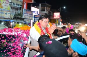 मुख्यमंत्री धामी सड़क मार्ग से पहुंचे काशीपुर से खटीमा, जगह-जगह पर हुआ भव्य स्वागत