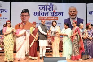 देहरादून। मुख्यमंत्री श्री पुष्कर सिंह धामी ने बुधवार को उत्तराखंड राज्य महिला आयोग द्वारा राजकीय दून मेडिकल कॉलेज ऑडिटोरियम में नारी शक्ति वंदन सम्मेलन को संबोधित करते हुए कहा कि प्रधानमंत्री श्री नरेंद्र मोदी के नेतृत्व में संसद द्वारा 2023 में पारित नारी शक्ति वंदन अधिनियम, देश की मातृशक्ति के सम्मान, अधिकार और सशक्तिकरण की दिशा में उठाया गया एक युगांतकारी कदम है। इस अधिनियम के माध्यम से लोकसभा और राज्य विधानसभाओं में महिलाओं के लिए 33 प्रतिशत आरक्षण का प्रावधान किया गया है। उन्होंने कहा कि महिलाओं की शक्ति, साहस और समर्पण ही हमारे समाज और देश की प्रगति का आधार है।