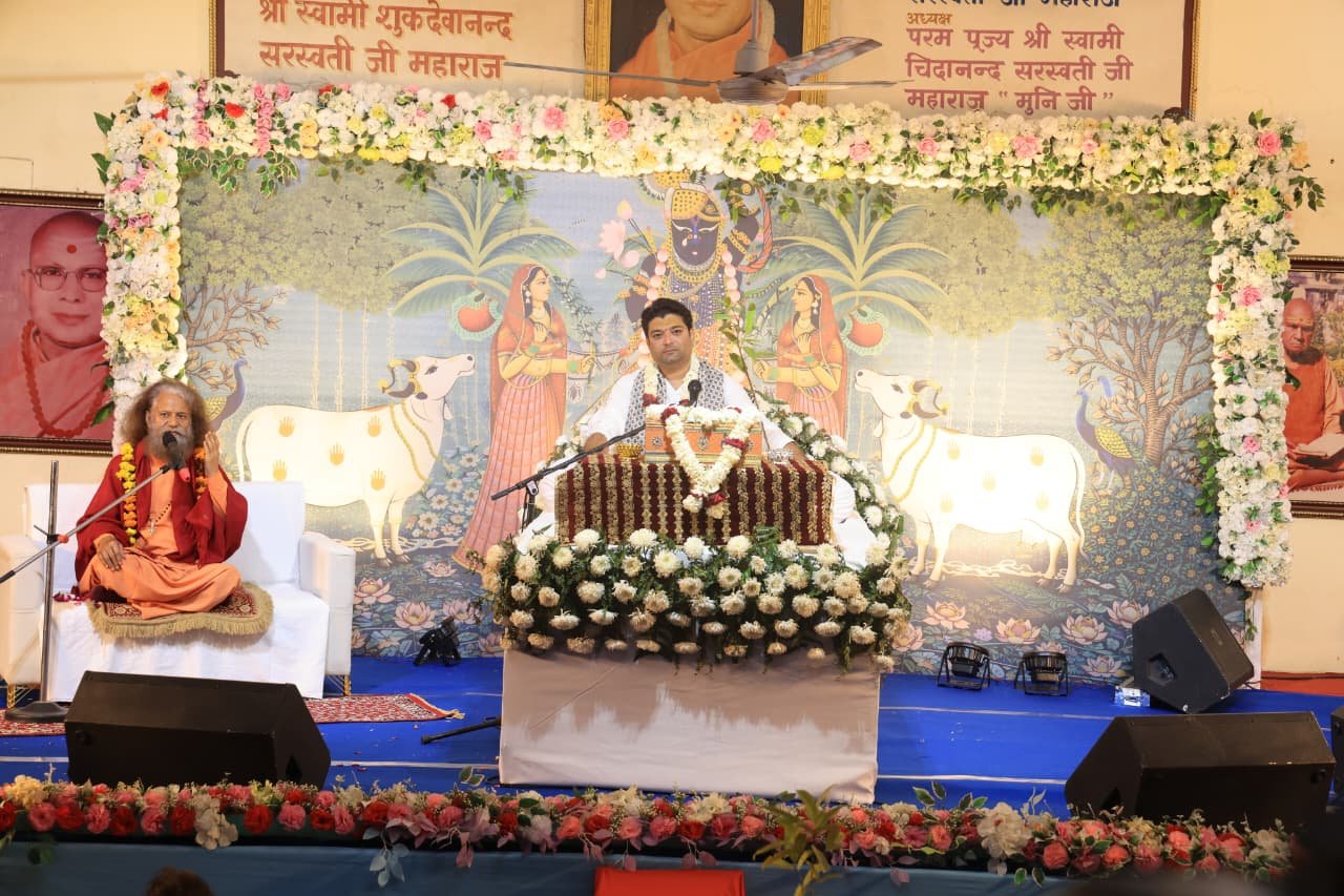 इस पावन अवसर पर परमार्थ निकेतन के अध्यक्ष, स्वामी शुकदेवानन्द ट्रष्ट के मैनेजिंग ट्रष्टी, पूज्य स्वामी चिदानन्द सरस्वती जी का सान्निध्य, आशीर्वाद और प्रेरणादायी उद्बोधन ने सभी श्रद्धालुओं को भावविभोर कर दिया। अपने संदेश में उन्होंने कहा कि श्रीमद्भागवत कथा जीवन का दर्शन है, जीवन जीने की कला है। यह ग्रंथ हमें करुणा, सेवा, समर्पण और ईश्वर प्रेम का मार्ग दिखाता है। उन्होंने सभी का आह्वान करते हुये कहा कि कथा के माध्यम से प्राप्त ज्ञान को व्यवहार में उतारें और समाज व राष्ट्र निर्माण में योगदान दें।