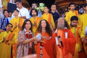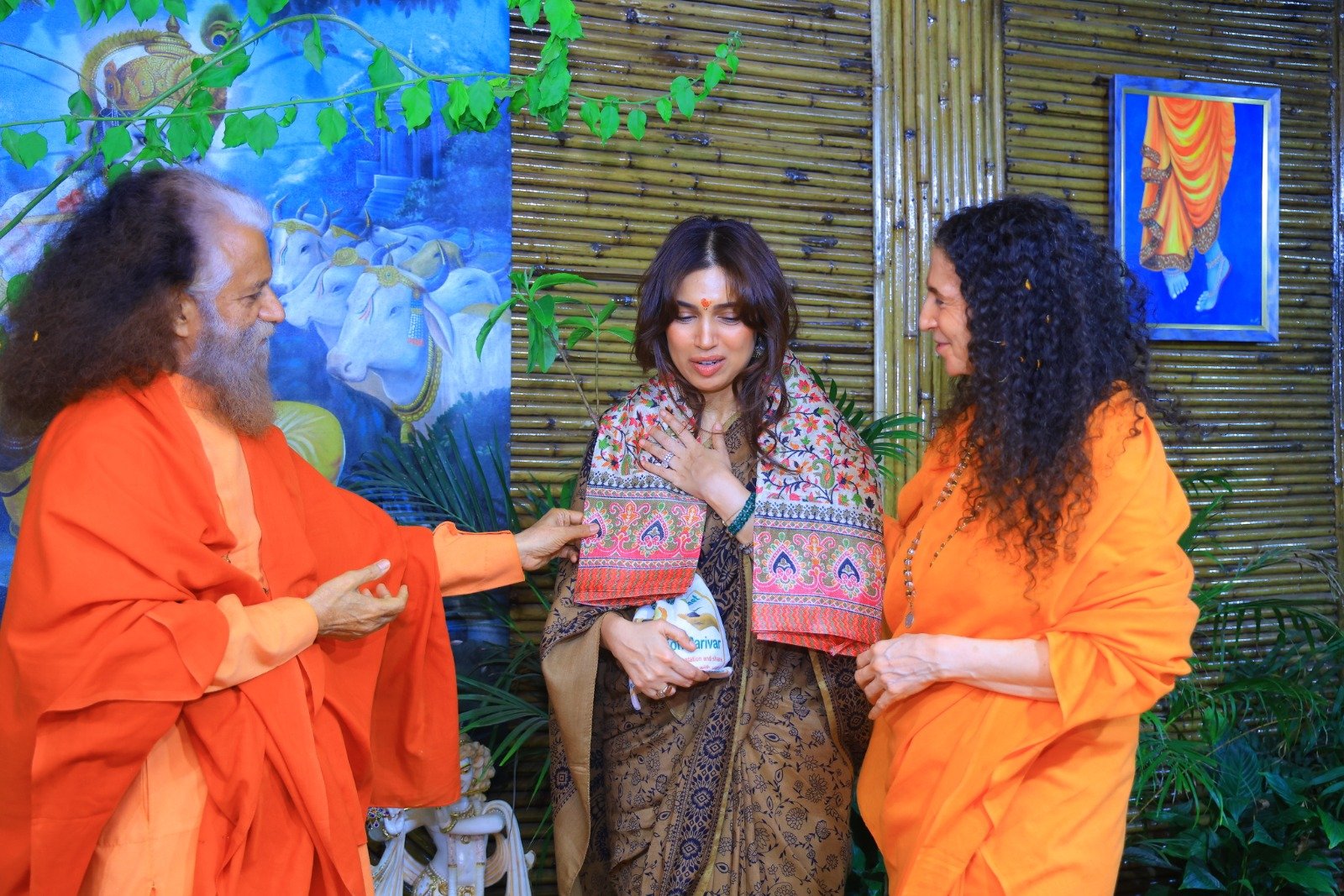 इस पावन अवसर पर परम पूज्य स्वामी चिदानन्द सरस्वती जी एवं पूज्य साध्वी भगवती सरस्वती जी ने अभिनेत्री भूमि पेडनेकर को अंगवस्त्र, रूद्राक्ष का दिव्य पौधा तथा रूद्राक्ष की पवित्र माला भेंट कर उनका आत्मीय अभिनन्दन किया। यह भावपूर्ण सम्मान उनके लिये एक अविस्मरणीय आध्यात्मिक स्मृति बन गया।
