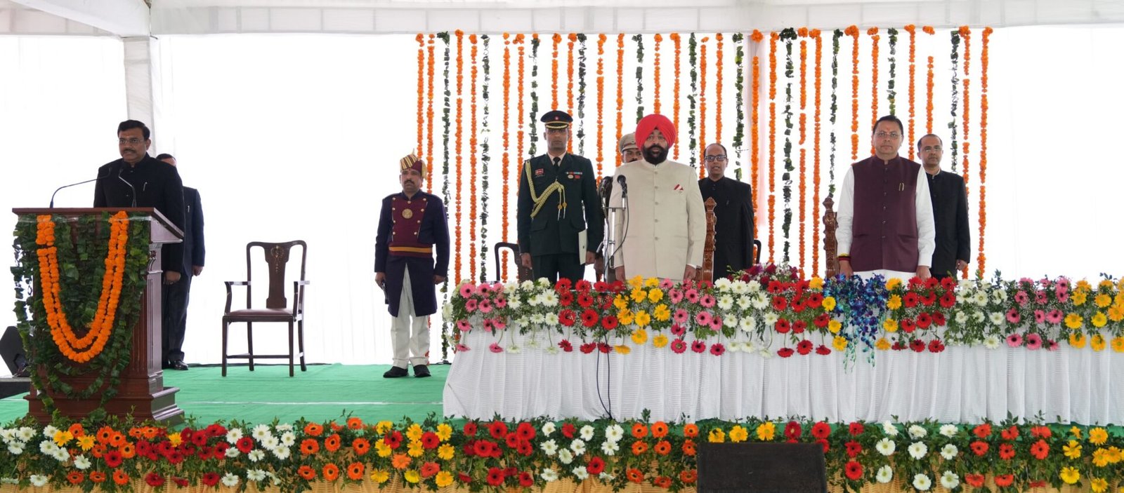 शपथ ग्रहण समारोह में महाराष्ट्र के पूर्व राज्यपाल एवं उत्तराखण्ड के पूर्व मुख्यमंत्री श्री भगत सिंह कोश्यारी, कैबिनेट मंत्री श्री सुबोध उनियाल, श्रीमती रेखा आर्या, श्री गणेश जोशी एवं श्री सौरभ बहुगुणा, सांसद श्री महेन्द्र भट्ट और श्री नरेश बंसल सहित अनेक गणमान्य व्यक्ति एवं वरिष्ठ अधिकारी उपस्थित रहे। कार्यक्रम का संचालन मुख्य सचिव श्री आनन्द बर्द्धन द्वारा किया गया।