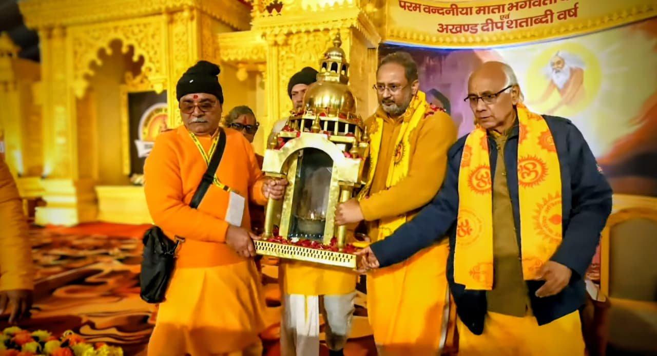 हरिद्वार। गायत्री परिवार के संस्थापक युगऋषि पं. श्रीराम शर्मा आचार्य द्वारा वर्ष 1926 में स्थापित अखंड दीपक आज भी शांतिकुंज में अनवरत प्रज्वलित है, मानो एक शताब्दी से मानव चेतना की धड़कन बनकर। यह अखंड ज्योति केवल दीप-शिखा नहीं, बल्कि तप, त्याग और साधना से उपजी वह दिव्य चेतना है, जो भारतीय आध्यात्मिक परंपरा को सतत आलोकित कर रही है। इसी पावन परंपरा को युगधारा में प्रवाहित करते हुए शताब्दी समारोह के दलनायक डॉ. चिन्मय पण्ड्या ने श्रद्धा, मर्यादा और गरिमा से परिपूर्ण वातावरण में अखंड दीपक की अग्नि से प्रज्वलित दिव्य दीये, पावन गुरुसत्ता के चरण पादुका को शांतिकुंज से समारोह स्थल बैरागी द्वीप लेकर पहुंचे। इस ऐतिहासिक क्षण में हजारों श्रद्धालुओं ने पुष्पवर्षा कर दिव्य ज्योति का भावविभोर स्वागत किया तथा श्रद्धासिक्त होकर दर्शन-प्रणाम किया।