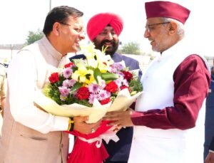 उपराष्ट्रपति सी.पी. राधाकृष्णन का स्वागत राज्यपाल एवं मुख्यमंत्री धामी ने किया