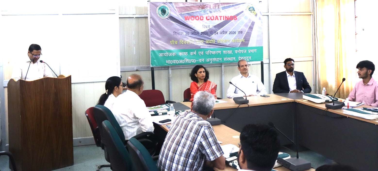 देहरादून। काष्ट कर्म एवं परिष्करण अनुभाग, वनोपज प्रभाग, वन अनुसंधान संस्थान (FRI), देहरादून में 20 अप्रैल से 24 अप्रैल 2026 तक आयोजित पाँच दिवसीय वुड कोटिंग्स पर अल्पकालीन प्रशिक्षण कार्यक्रम का 24 अप्रैल 2026 को सफलतापूर्वक समापन हुआ।इस प्रशिक्षण कार्यक्रम में कुल 23 प्रतिभागियों ने भाग लियाजोविभिन्न शैक्षणिक एवं औद्योगिक पृष्ठभूमि से हैं। इस कार्यक्रम का उद्देश्य लकड़ी की सतह परिष्करण एवं कोटिंग तकनीकों के क्षेत्र में तकनीकी ज्ञान एवं व्यावहारिक कौशल को सुदृढ़ करना था।